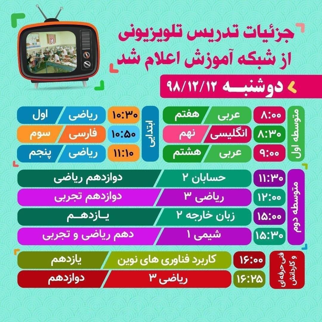 این روزها که بخاطر بی تدبیری برخی از مسولین مدارس تعطیل شده است!! لازم است از تدبیر صدا و سیما و شبکه آموزش در پخش تدریس دروس تقدیر و تشکر کرد.