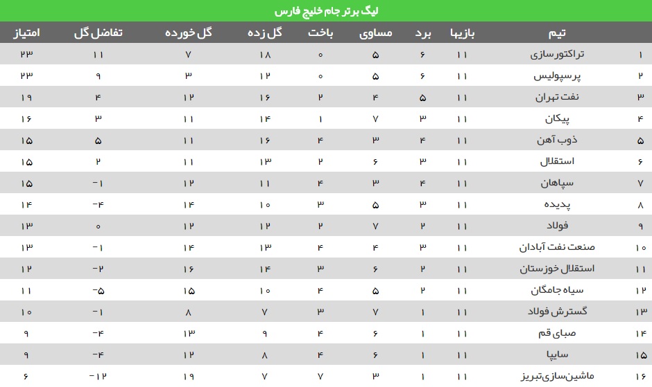 برنامه هفته دوازدهم لیگ برتر فوتبال+جدول