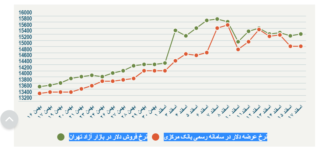 در حالی که طی اسفندماه نرخ رسمی عرضه دلار توسط شبکه رسمی صرافیهای تحت مدیریت بانک مرکزی نزدیک به ۱۰۰۰ تومان افزایش یافته، بهای فروش دلار در بازار آزاد تهران حدود ۸۰۰ تومان بالا رفته است. رخدادی که به باور برخی از فعالان بازار ارز ایران به این معناست که با نزدیک شدن به روزهای پایانی سال و روند نزولی تقاضای ارز به دلیل لغو سفرهای نوروزی و کند شدن واردات کالا به کشور به دلیل شیوع ویروس کرونا، بانک مرکزی به دنبال حفظ نرخ ارز در بالاترین سطح ممکن است.