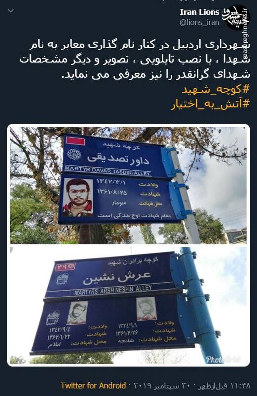 اقدام جالب شهرداری تبریز در مورد نام شهدا بر روی معابر + عکس