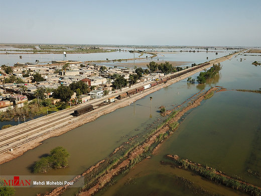مردم بامدژ استان خوزستان بعد از گذشت چندین روز از سیل همچنان در واگنهای قطار اسکان دارند. راههای زمینی و دسترسی همچنان بسته است و کار را مشکل میکند.