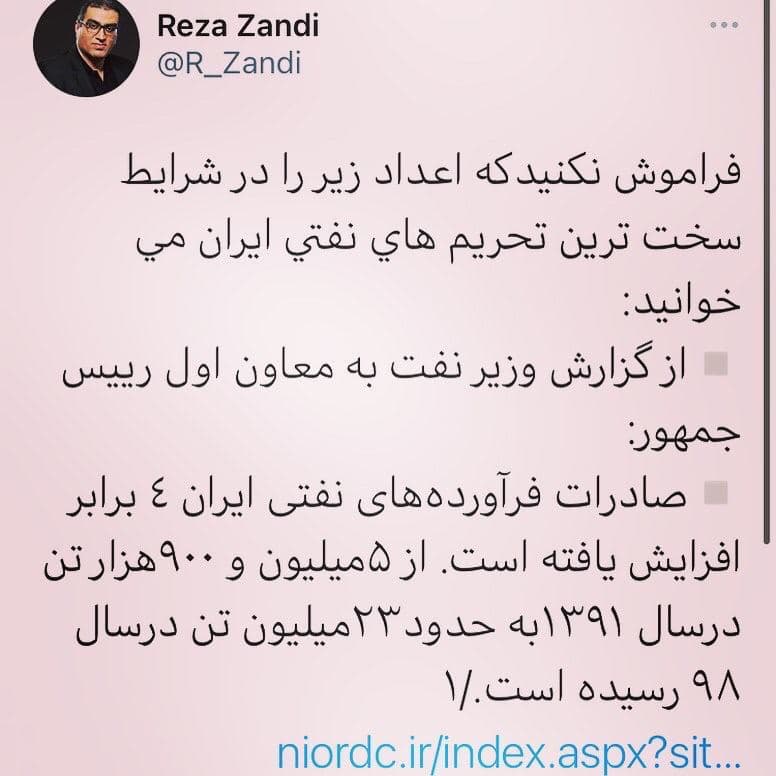 رضا زندي، روزنامه نگار حوزه انرژي در توييترش نوشت:
