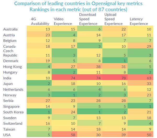 بهترین و بدترین شبکه 4G متعلق به کدام کشورهاست؟