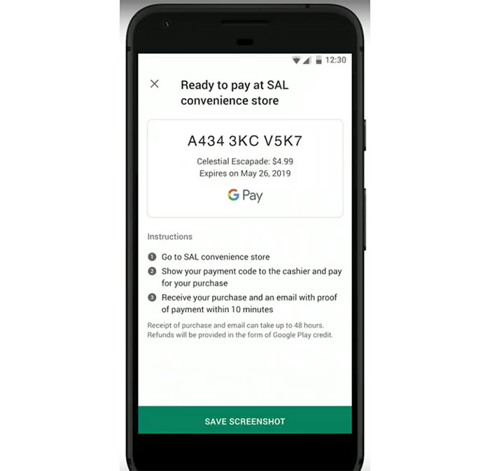 قابلیت جدید به کاربر اندرویدی امکان میدهد که در مرحلهی پرداخت برای خرید اپلیکیشن یا پرداخت درونبرنامهای، گزینهی جدیدی برای انتخاب داشته باشد. کاربر بهجای پرداخت هزینه با کارت اعتباری، کد پرداختی دریافت میکند تا با استفاده از آن پرداخت خود را بهصورت نقد در یک فروشگاه نزدیک انجام دهد.