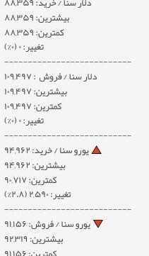 گفتنی است، نرخ های اعلام شده بیانگر میانگین وزنی نرخ خرید و فروش ارز بر مبنای معاملات ثبت شده در سامانه نظارت ارز (سنا) توسط صرافی های مجاز کل کشور است.