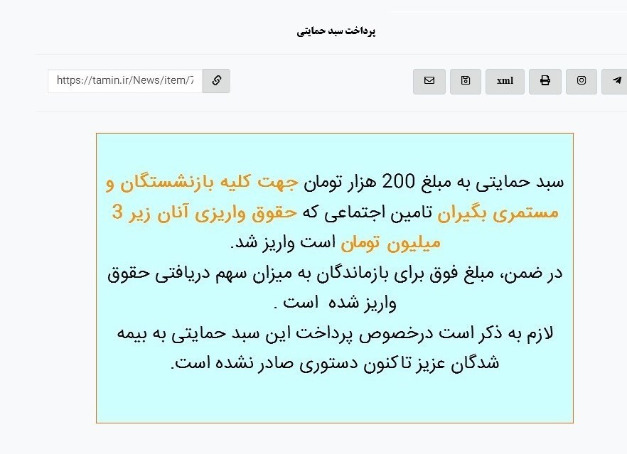 اما سازمان تأمین اجتماعی اعلام کرده است که در خصوص پرداخت این سبد حمایتی به بیمه شدگان تا کنون دستوری صادر نشده است.