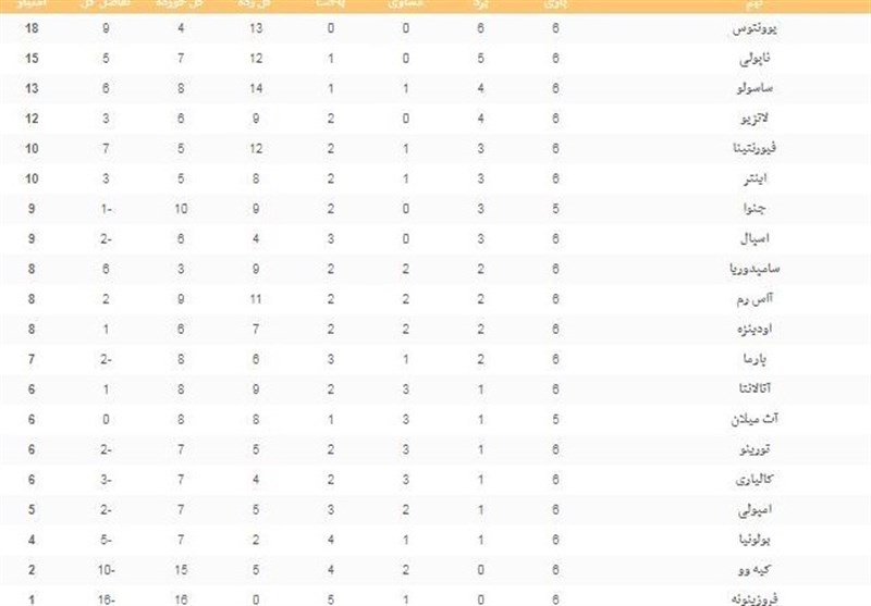 جدول ردهبندی سری A را در زیر مشاهده کنید.