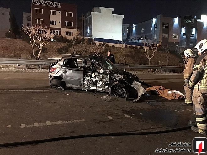 برخورد مرگبار پژو ۲۰۶ با گاردیل در بزرگراه یادگار امام + تصاویر