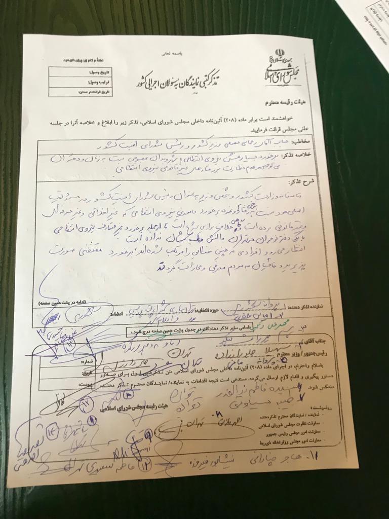 نمایندگان به وزیر کشور بایت برخورد نیروی انتظامی تذکر دادند، نام یک نفر اما که اذهان عمومی توقع داشت او هم نامه را امضا کرده باشد به چشم نمیخورد.