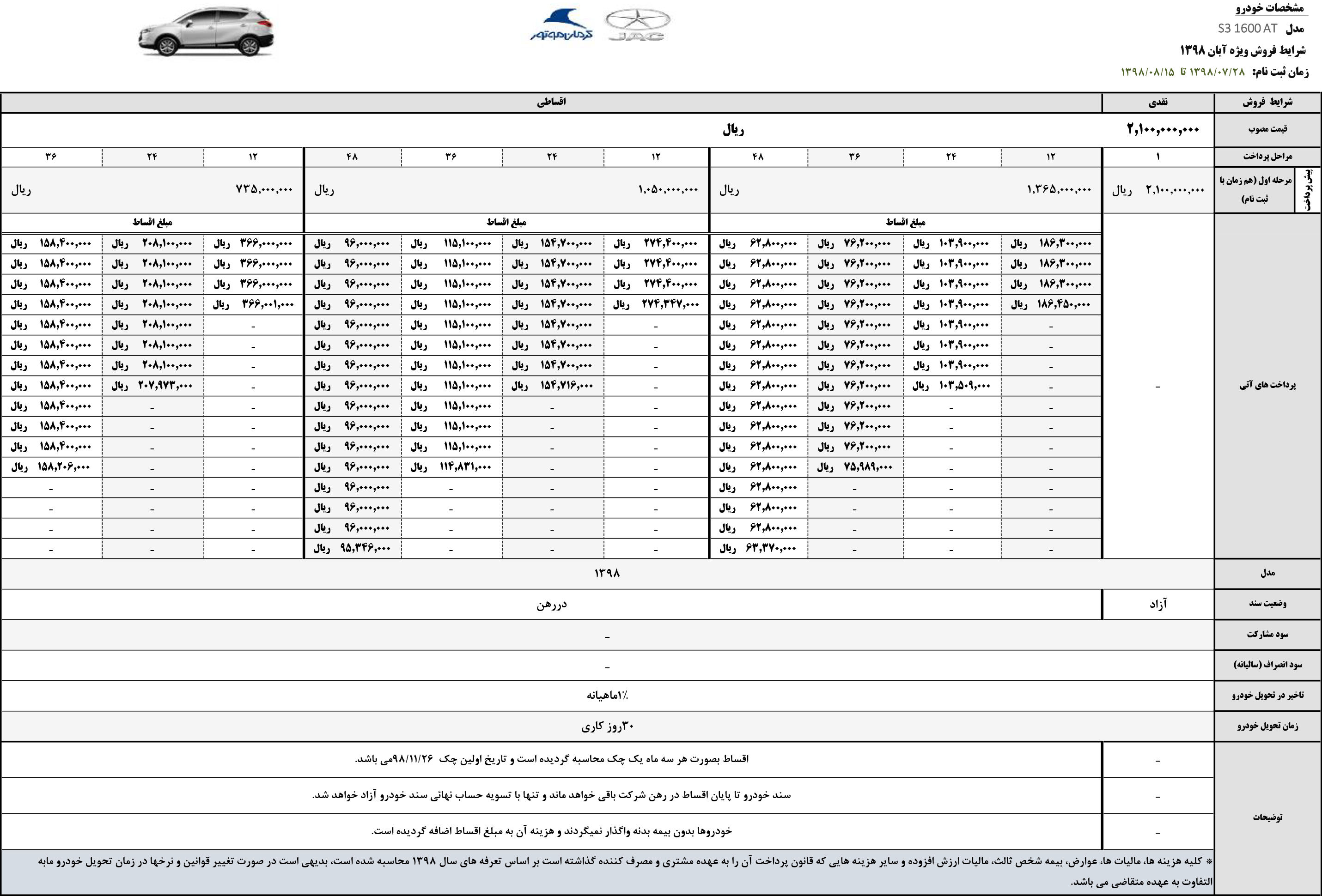 کرمان موتور طرح جدید فروش اقساطی محصولات خود را ویژه آبان ماه ۹۸ آغاز نمود.
