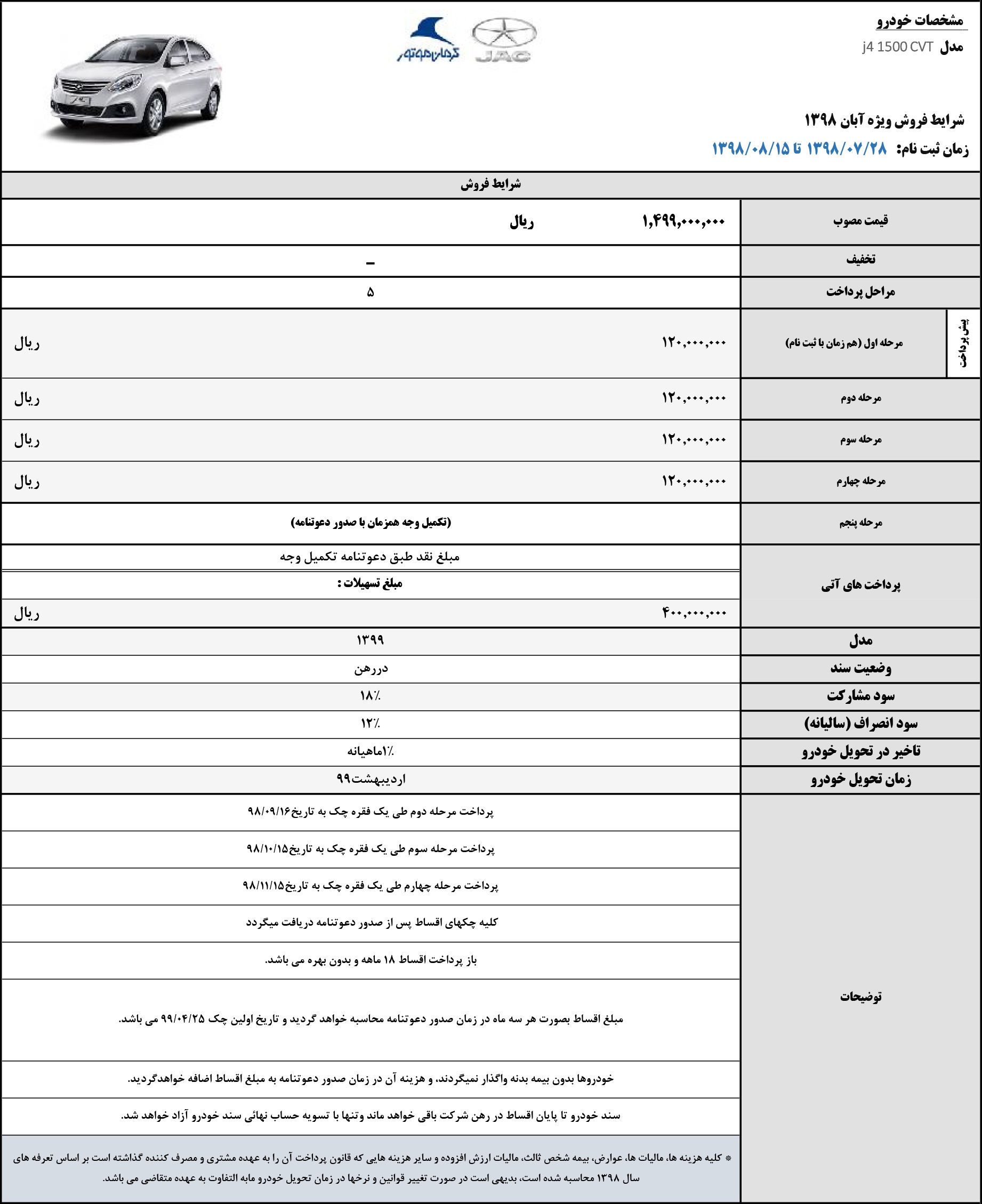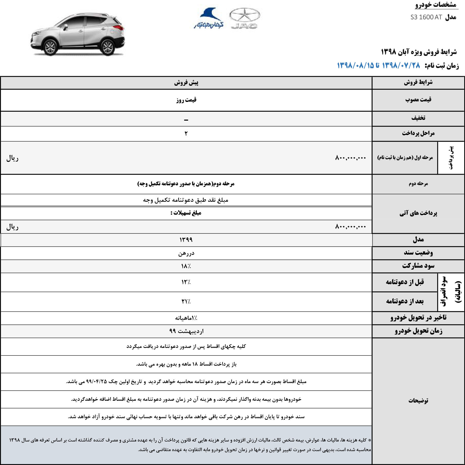 بر این اساس، کرمان موتور برای کراس اور جک اس۳، شرایط فروش اقساطی با تحویل ۳۰ روزه و همچنین شرایط پیش فروش متنوعی را اعلام کرده است، جک جی ۴ نیز با موعد تحویل اردیبهشت ۹۹ ثبت نام می گردد.