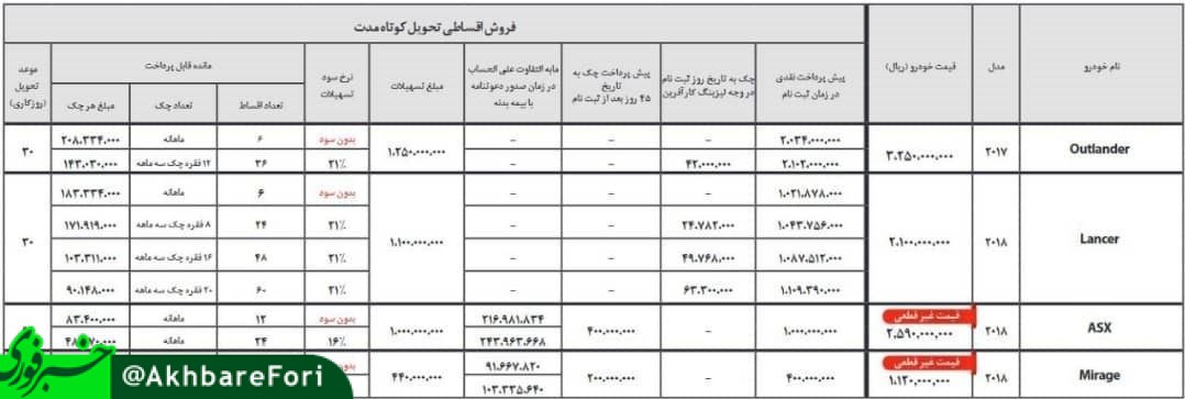 نماینده رسمی میتسوبیشی در ایران شرایط فروش اقساطی محصولات این برند را اعلام کرده است.