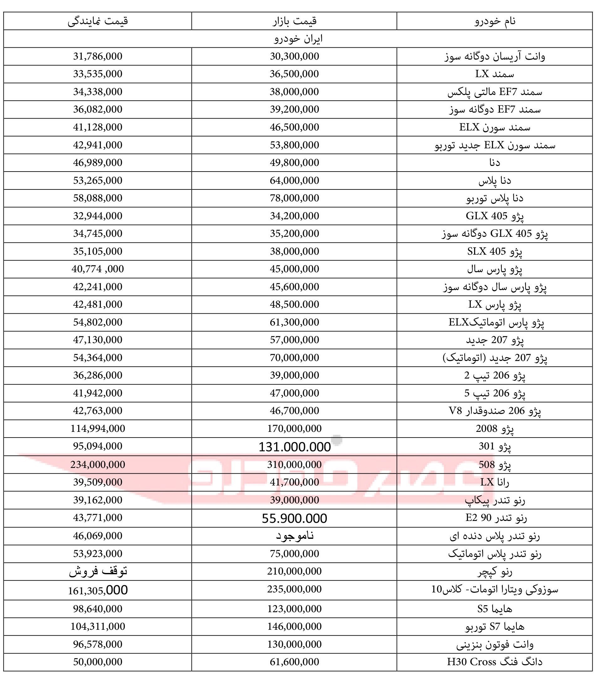 قیمت انواع محصولات ایران خودرو در بازار و نمایندگی به شرح زیر است: منبع:عصرخودرو 15
