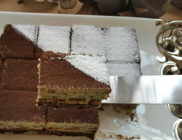لایه آخر را با کرم بپوشانید و در صورت تمایل روی آن را با مغز گردو، پسته یا بادام تزیین کنید.