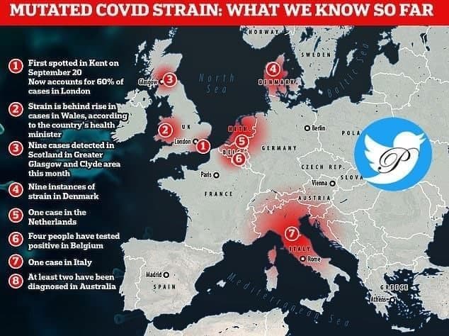 نقشه گسترش کروناویروس انگلیسی موسوم به VUI-202012/01