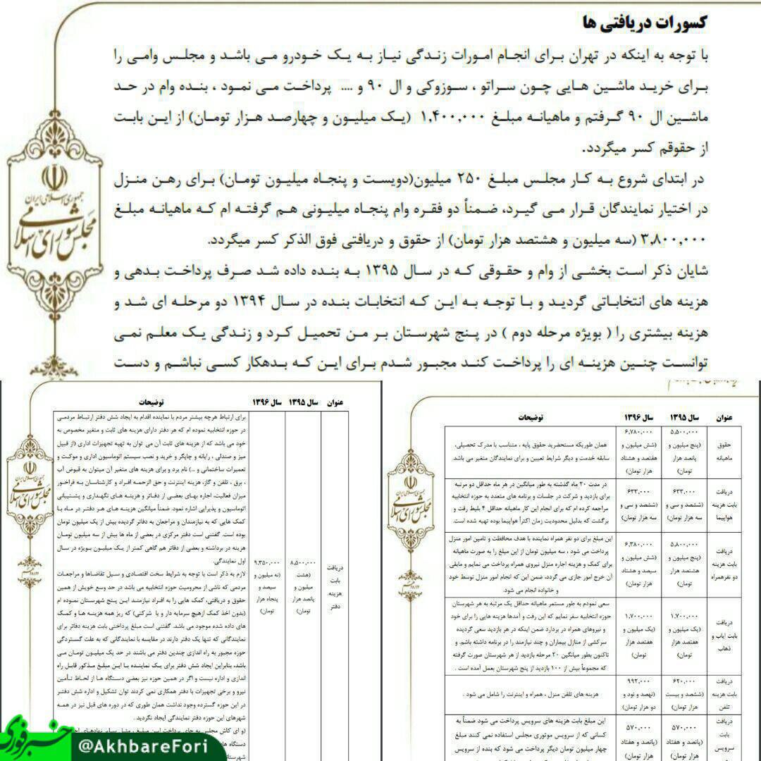 نماینده مجلس جزییات دریافتی خود را منتشر کرد/ مجلس به نمایندگان وام خرید سوزوکی و سراتو و ال ۹۰ می دهد
