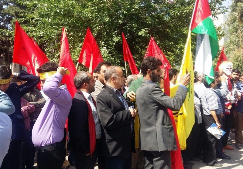 شرکت کنندگان در این تجمع با در دست داشتن پرچمهایی با مضمون "مرگ بر آمریکا"، "مرگ بر اسرائیل" و سردادن شعارهایی در محکومیت آمریکا و اسرائیل و کشتار مردم فلسطین و اقدام آمریکا را در انتقال پایتخت به قدس شریف محکوم کردند.