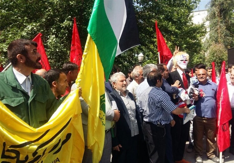تجمع جمعی از مردم و دانشجویان تهرانی در اعتراض به کشتار مردم فلسطین و غزه در جریان انتقال پایتخت آمریکا به قدس در مقابل سازمان بسیج دانشجویی (لانه جاسوسی سابق) آغاز شد.