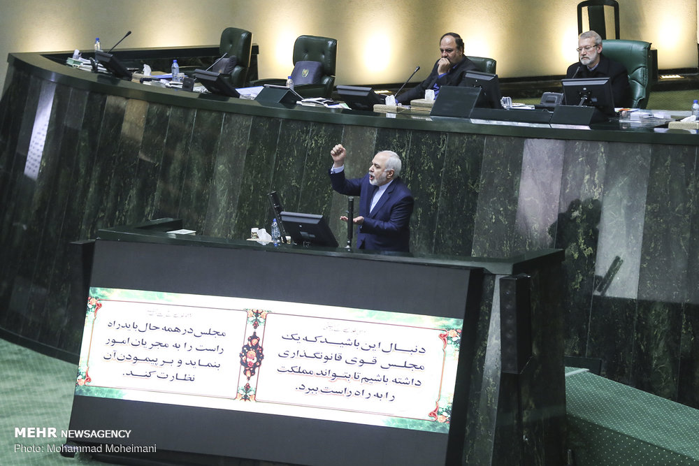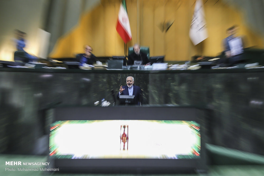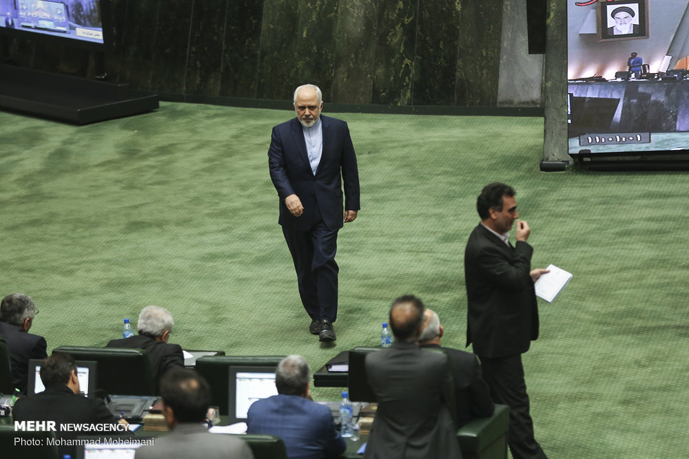 محمد جواد ظریف وزیر امور خارجه صبح دوشنبه جهت پاسخ به سوالات نمایندگان در مجلس شورای اسلامی حاضر شد .