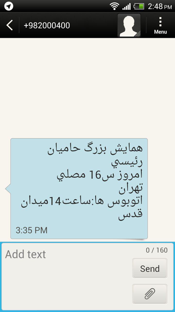 به گزارش خبرنگار سیاسی خبرفوری در حالی امروز گردهمایی حامیان حجتالاسلام ابراهیم رئیسی نامزد دوازدهمین دوره انتخابات ریاستجمهوری در مصلی تهران برگزار میشود که از صبح امروز پیامکهایی حاوی دعوت از مردم برای حضور در این گردهمایی به آنها ارسال شده است.