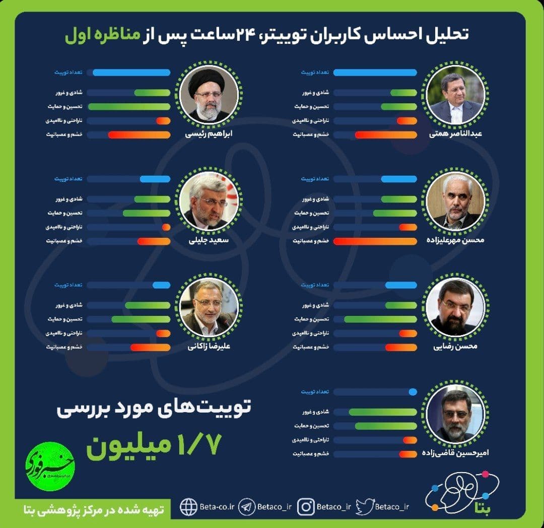 تحلیل احساسات کاربران توییتر، بعد از مناظره اول انتخابات ریاست جمهوری ۱۴۰۰