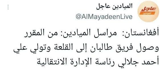 المیادین به نقل از رویترز و به نقل از وزارت کشور افغانستان خبر داد که نیروهای طالبان از هر سو وارد کابل، پایتخت شدند.