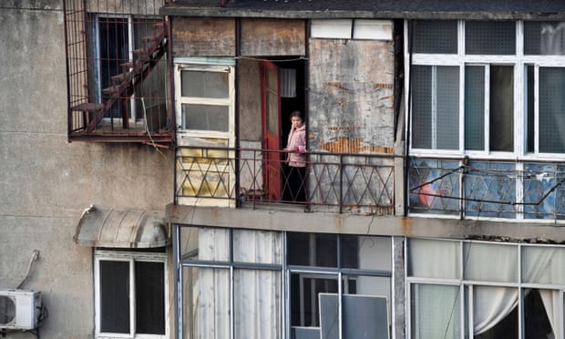 یک زن ساکن ووهان در بالکن خانه/ عکس: رویترز