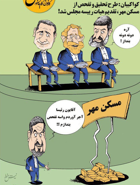 در حاشیه اعلام تحقیق و تفحص مسکن مهر توسط کواکبیان، مسعود ماهینی این کارتون را در روزنامه قانون منتشرکرد.