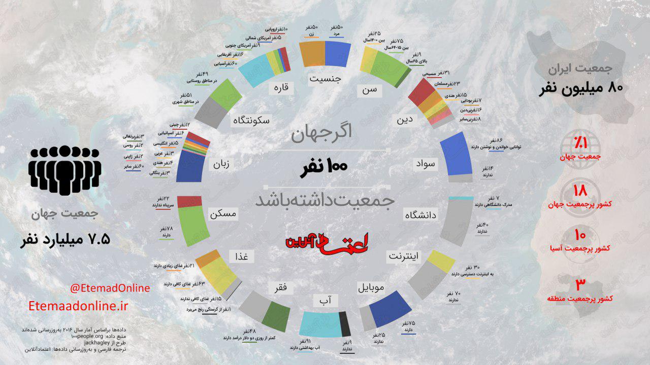 اینفوگرافیک/ اگر جهان 100 نفر جمعیت داشته باشد