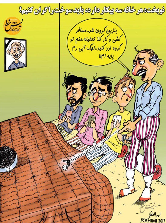 خبرفوری سرگرمی طنزوسرگرمی ۲۶ آذر ۱۳۹۶ ۱۳:۳۶ اینهم عاقبت گرانشدن بنزین در حاشیه زمزمه افزایش قیمت سوخت، ابوالفضل رحیمی این کارتون را در روزنامه قانون منتشرکرد. کپی شد کدخبر: 228455 ت ت 6060 35 کاریکاتور سوخت قیمت بنزین کپی شد با دوستان خود به اشتراک بگذارید: