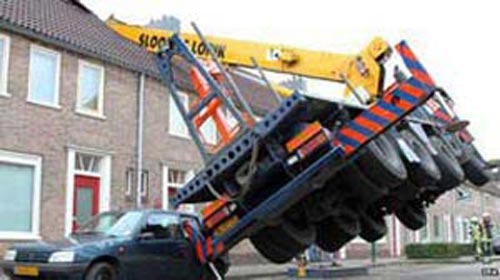 اما به جای آن، جرثقیل غیرمطمئنی که برای این کار استفاده کرده بود روی سقف خانه همسایه فرود آمد.