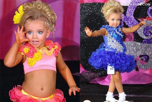 اما این دختر خردسال مجبور است همانند زن های بزرگسال آرایش کند و اگر به اتاق وی سری بزنید در کنار اینها عکسهایی مشاهده خواهید کرد که او را در لباس شب در حالی که آرایش کرده و موهایش مثل زنان شینیون شده است و جواهرات به سر و گردن دارد و یا با بکینی و کفش پاشنه دار است و این چیزی است که باعث تفاوت میان این دختر بچه دیگر هم سن و سالهایش است.