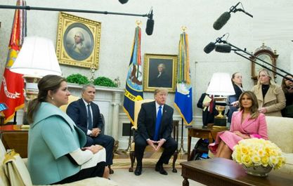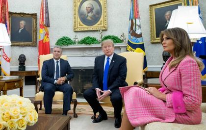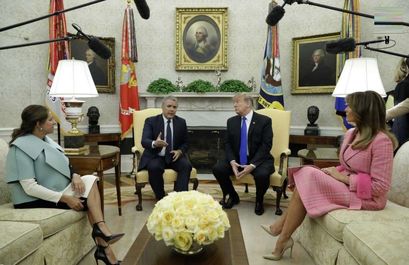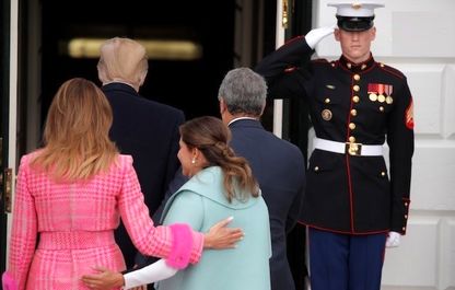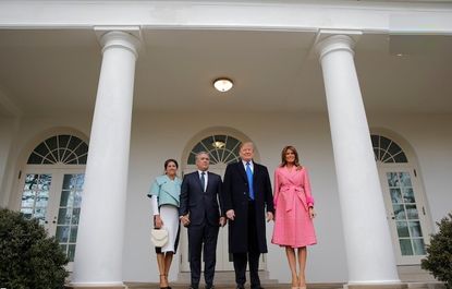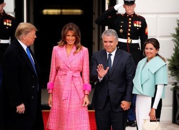 دونالد ترامپ رئیس جمهور و ملانیا ترامپ، از ایوان دوکه مارکز رئیس جمهور کلمبیا و همسرش در کاخ سفید استقبال کردند.