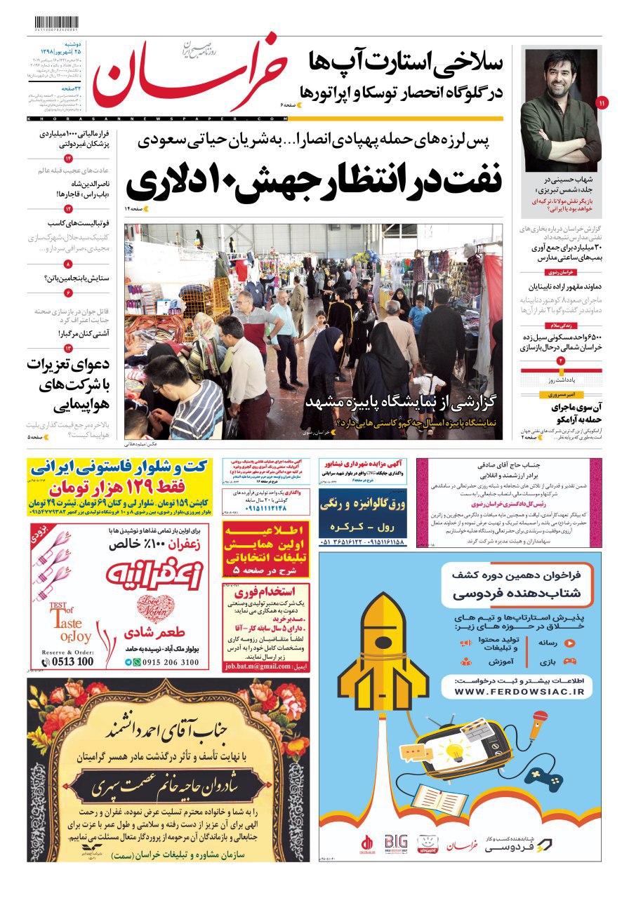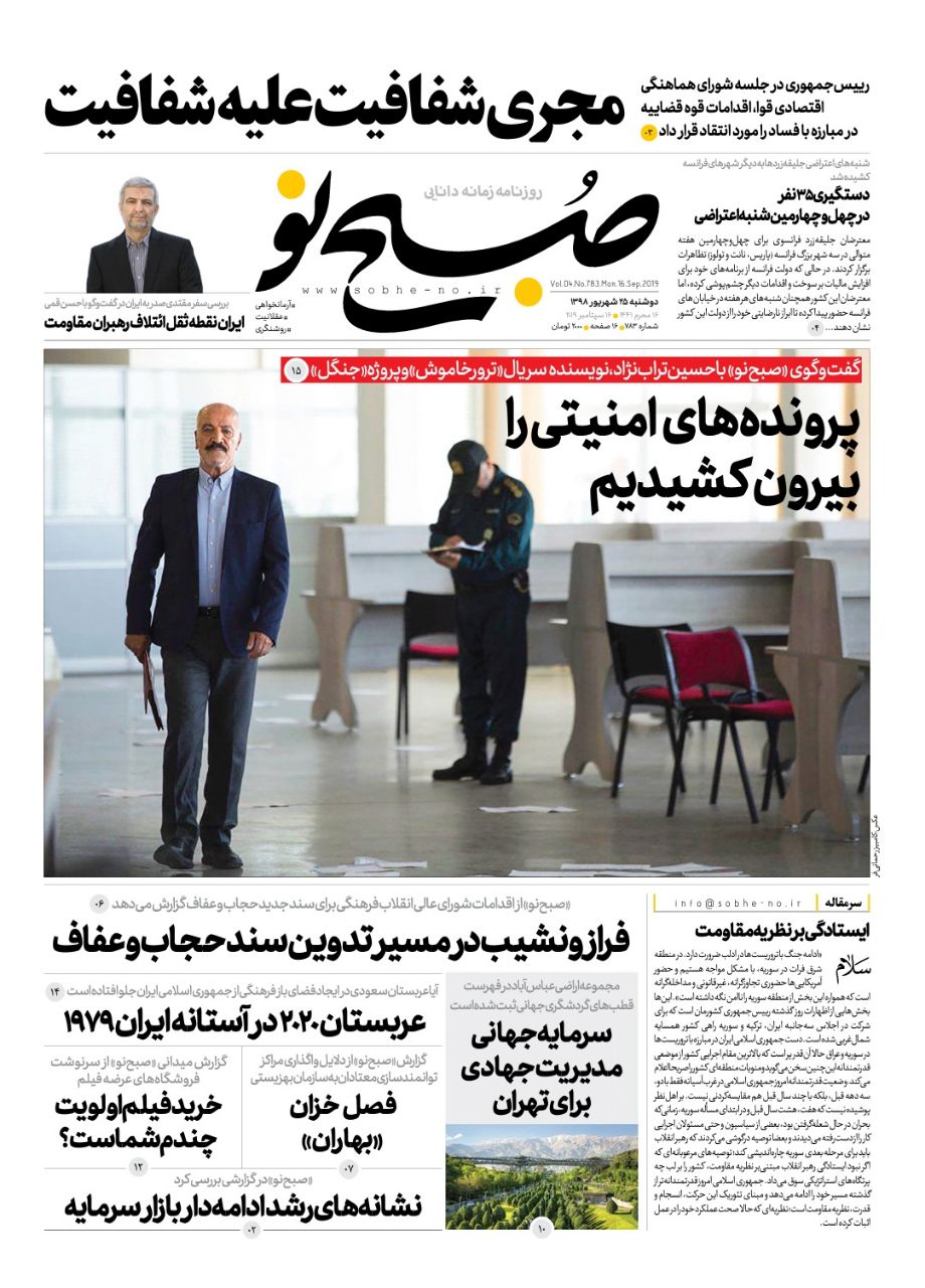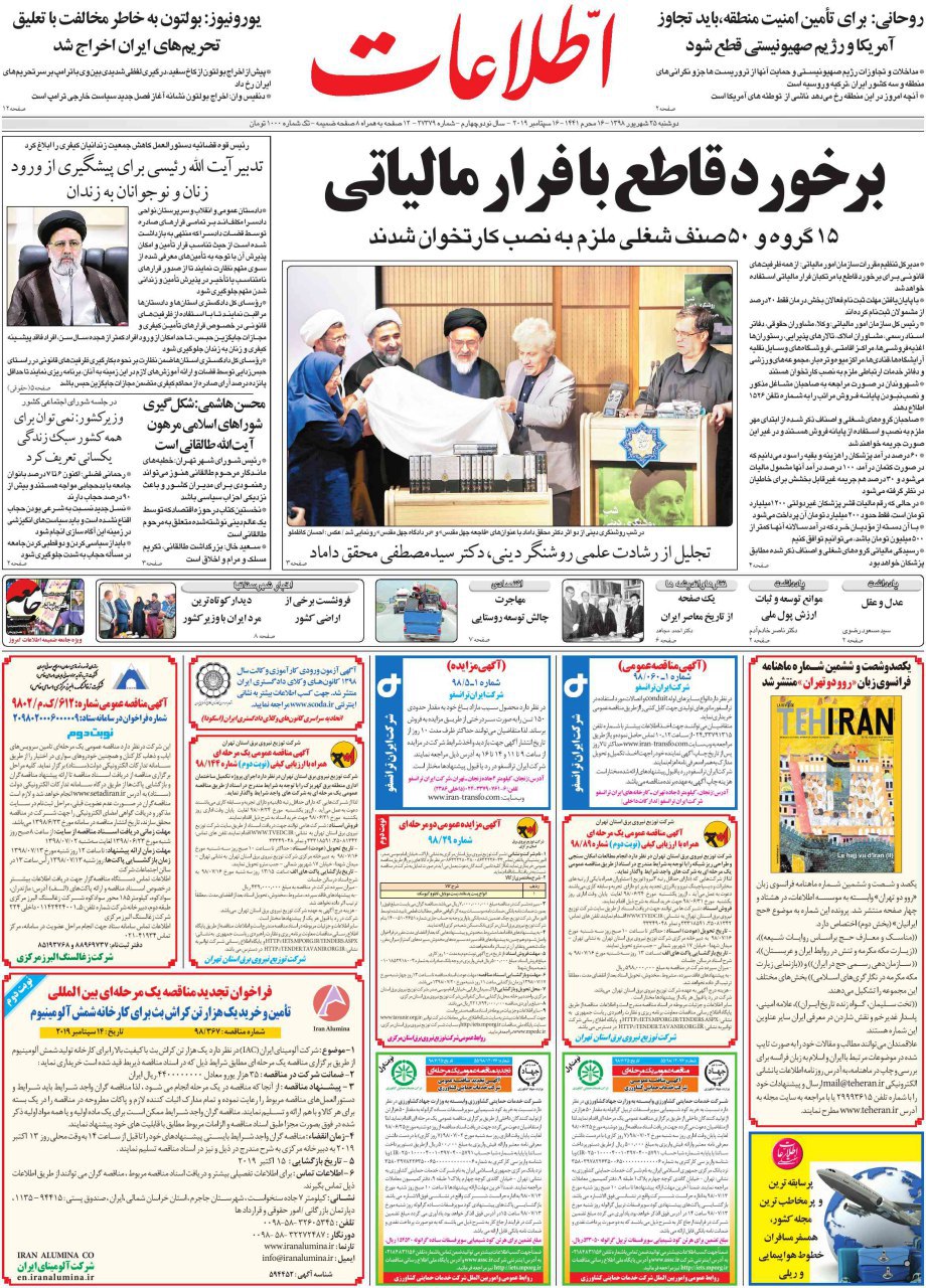 روزنامه‌های امروز موضوعات مختلفی را در صفحه یک خود برجسته کردند. از اختلاف روحانی و رئیسی بر سر دادگاه‌های مبارزه با مفاسد اقتصادی تا دروغ آمریکا درباره نقش ایران در حمله به عربستان.