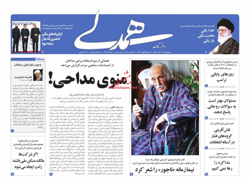 تصاویر صفحه نخست روزنامههای امروز پنجشنبه ۲۳ آبان ۱۳۹۸