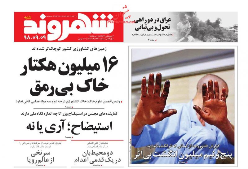 تصاویر صفحه نخست روزنامههای امروز یکشنبه ۱۰ آذر ۱۳۹۸