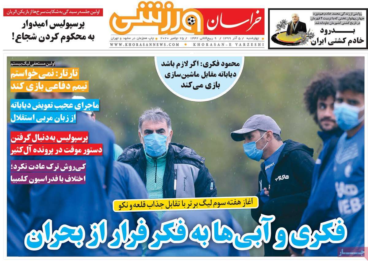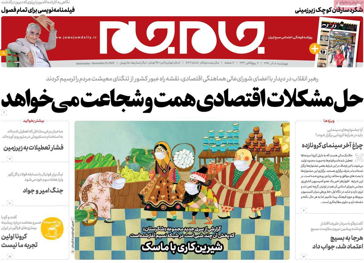 تصاویر صفحه نخست روزنامههای امروز چهارشنبه ۵ آذر ۱۳۹۹