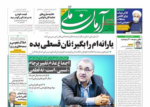 صفحه نخست روزنامههای امروز دوشنبه ۲۴ آذر ۱۳۹۹