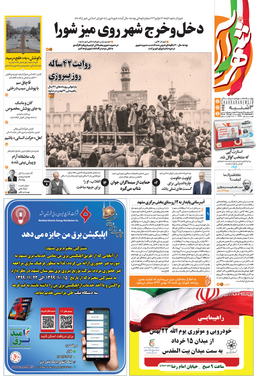 تصاویر صفحه نخست روزنامههای امروز سهشنبه ۲۱ بهمن ۱۳۹۹
