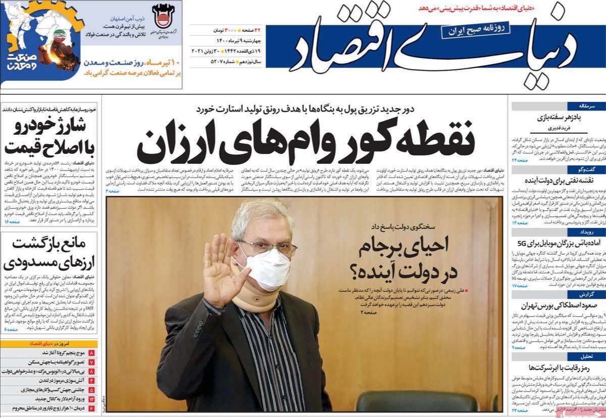 صفحه نخست روزنامه‌های امروز چهارشنبه ۹ تیر ۱۴۰۰