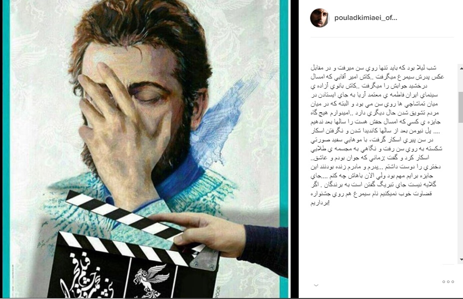 به گزارش خبرگزاری خبرآنلاین، پولاد کیمیایی در کنار عکسی از علی حاتمی، در صفحه اینستاگرام خود متنی را منتشر کرد و نسبت به جوایز جشنواره فیلم فجر و داوری‌ها واکنش نشان داد.