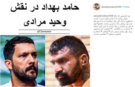 احمد ایراندوست بازیگر سینما و تلویزیون که سابقه حضور در سریال «شب های برره» به کارگردانی مهران مدیری را دارد، در واکنش به ساخت فیلمی درباره وحید مرادی شرور معروف تهران در اینستاگرام نوشت: «چرا کشتنش که حالا بخوان واسه خدا بیامرز فیلم درست کنن و اسطوره سازی کنن فکر نمیکنم ادم بدی بود هر چی بود روحش شاد و قرین رحمت معمولا اول یه نفر رو میکشن و بعد تبدیل به امیر کبیر میشه، زندونی بی ملاقاتی ...باغبونی که زمستون رو از بهار بیشتر دوس داره لوطی استخر و ناموس و وطن سلامتی سه تن.»