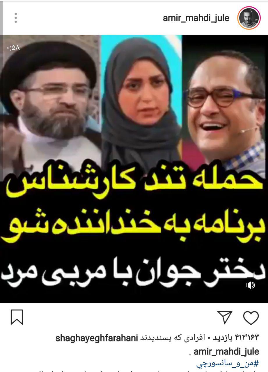 واکنش امیرمهدی ژوله به حمله تند کارشناس مذهبی تلویزیون به «خنداننده شو»/ عکس