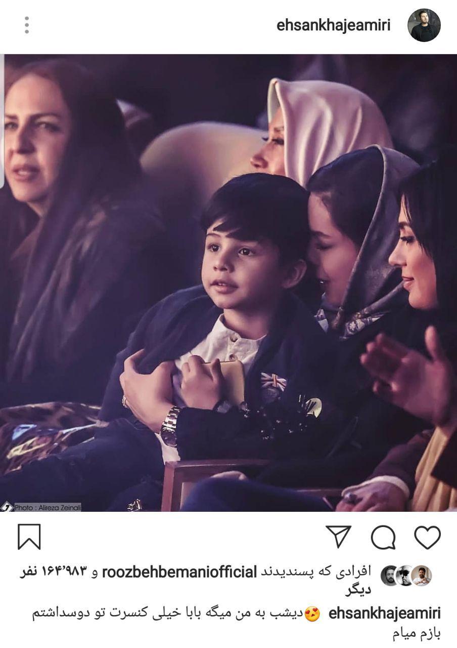 احسان خواجه امیری خواننده محبوب کشورمان عکسی از همسر و فرزند خود که در کنسرتش شرکت کرده بودند را در اینستاگرامش به اشتراک گذاشت.
