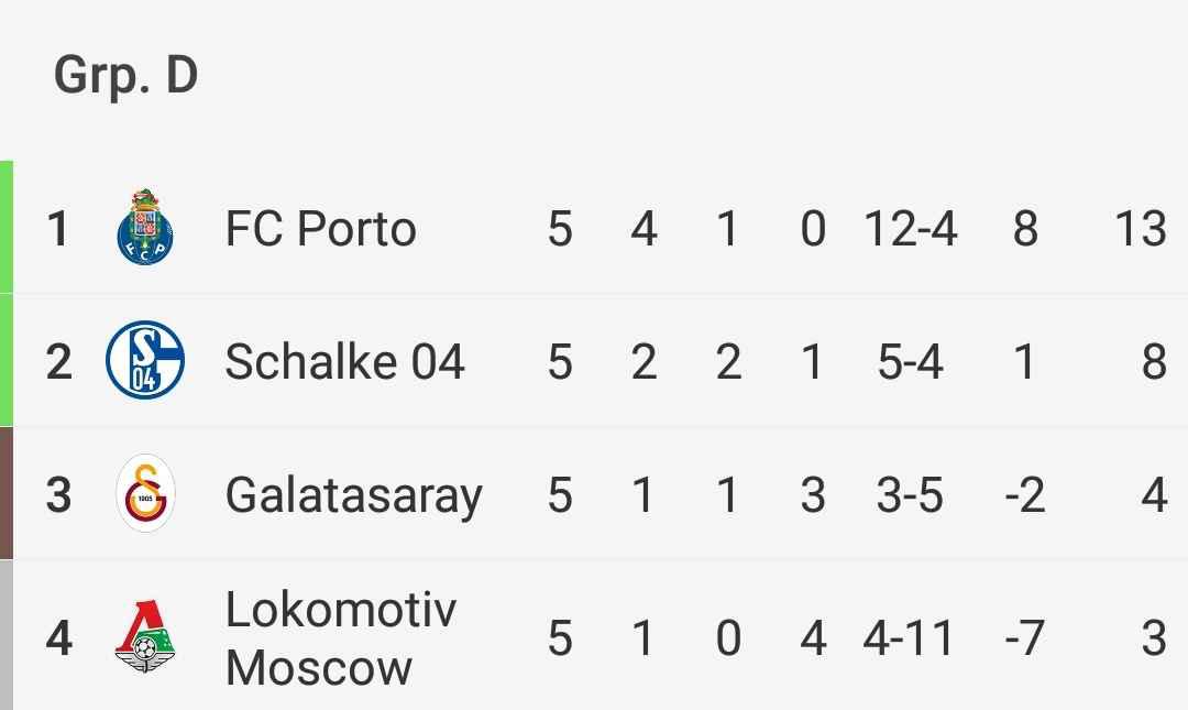 این گروه به خوبی نشان می دهد چرا سیاست های یوفا در سیدبندی لیگ قهرمانان اروپا نادرست است. در شرایطی که در گروه پیشین تیم های قدرتمندی مثل پاریسن ژرمن، لیورپول و ناپولی در یک جدول قرار داشتند، مجموعه ای از تیم های ضعیف اروپا در گروه چهارم لیگ قهرمانان اروپا جمع شده اند. این گروه حاصل ارزیابی باشگاه ها براساس ارزش لیگ آن ها است، نه ارزش عملکرد آن ها. پورتو به عنوان قدرتمندترین تیم گروه با چهار پیروزی و یک تساوی صعودش به عنوان صدرنشین را قطعی کرده است. شالکه در شرایطی در جایگاه دوم جدول قرار دارد که دو پیروزی، دو تساوی و یک باخت در کارنامه اروپایی خود دارد و همانند رقیب پرتغالی اش، به دور بعد صعود کرده است. تنها رقابت این گروه میان گالاتاسرای و لوکومتیو مسکو است. تیم پایتخت روسیه با سه امتیاز که حاصل پیروزی خانگی برابر گالاتاسرای است، قعرنشین است. اما شاگردان فاتح تریم که روز های خوبی را در ترکیه ندارند، برای صعود راحت به لیگ اروپا نیاز به کسب امتیاز مقابل پورتو مقتدر دارند. این اتفاق همانقدر غیرممکن به نظر می رسد که لوکومتیو مسکو در خانه شالکه با اختلاف شش گل به پیروزی برسد. بنابراین به نظر می رسد در پایان رقابت های این گروه، جدول در ردیف رتبه بندی تیم ها تغییری نداشته باشد.