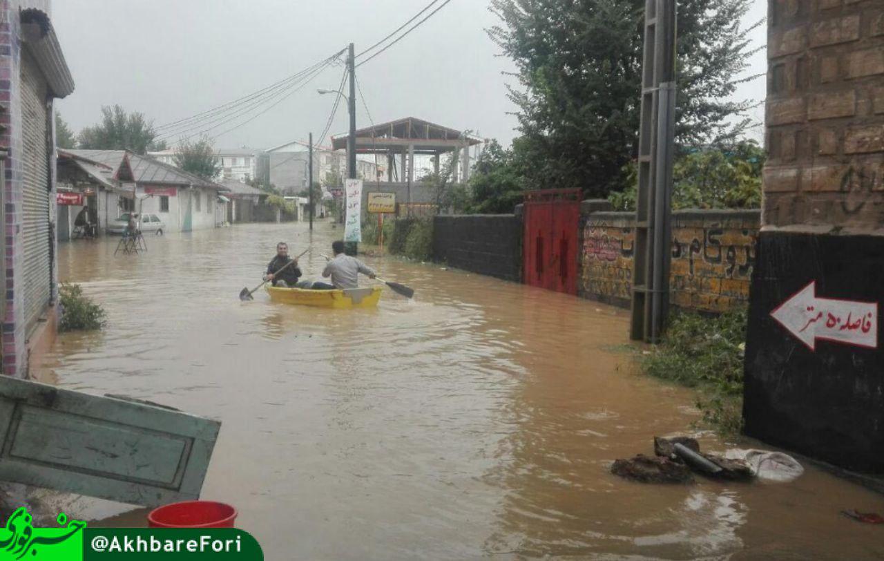 قایق سواری مردم در خیابانهای سیل زده شهرستان رودسر گیلان