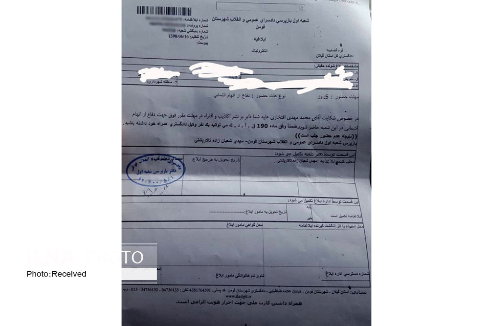 صبح دیروز- شنبه 16 شهریور ماه- حدود 10 نفر از خبرنگاران شهرستان فومن به اتهام نشر اکاذیب به صورت دسته جمعی به شعبه یکم بازپرسی دادگستری شهرستان فومن احضار شدند که پس از تفهیم اتهام متوجه شدند، نماینده فومن و شفت در مجلس شورای اسلامی از آنان شکایت کرده است.