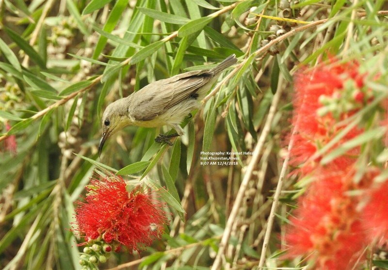 این پرندهنگر درباره تصاویری که اخیرا از یک خانواده شهدخوار ثبت کرده میگوید: برای مشاهده شهدخوارها به همان مکانی که سال گذشته در اهواز، فقط جنس نر شهدخوار را مشاهده کرده بودم رفتم و از زندگی یک روز یک خانواده شهدخوار تصاویری ثبت کردم. در آغاز روز و پس از طلوع آفتاب درختی که شهد گل داشت را انتخاب کردم و منتظر ماندم.درختی به نام شیشه شور(Bottlebrushes) با گلهای قرمز و گیاهانی مانند استبرق (Calotropis Procera)که در استان بوشهر می روید مورد علاقه شهد خوارها و پرندگان دیگری مانند انواع سسکها، بلبلهای خرما و حتی گنجشکها هستند.